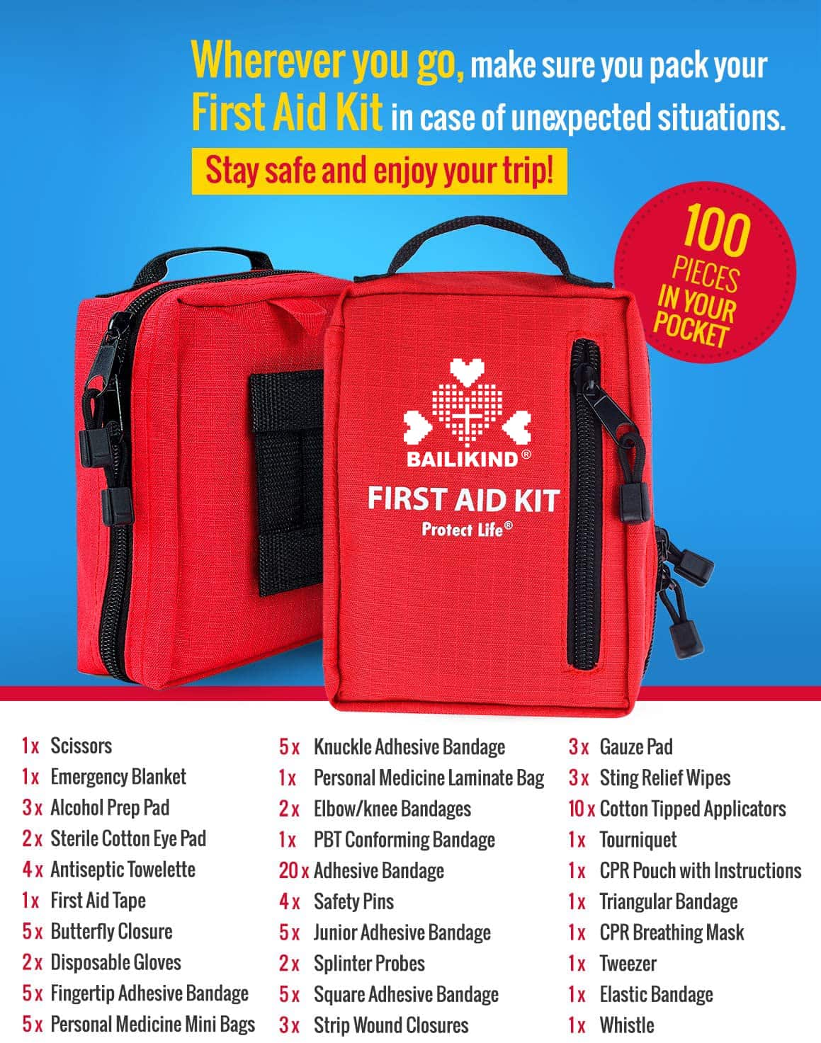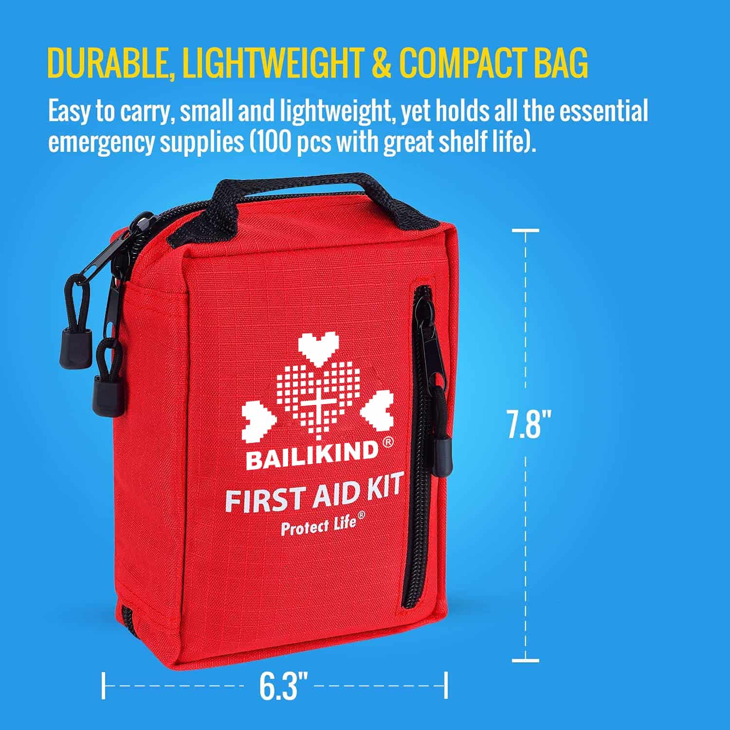 تطبيق مجموعة الإسعافات الأولية خفيفة الوزن للتخييم: يسهل حملها ولها الحجم المناسب تمامًا حتى تتمكن من تخزينها بسهولة في خزانة منزلك المتوسطة، أو غرفة النوم الجامعي، أو حقيبة الحشرات، أو السيارة، أو عربة سكن متنقلة، لتوصيلها بالدراجة أو دراجة نارية.